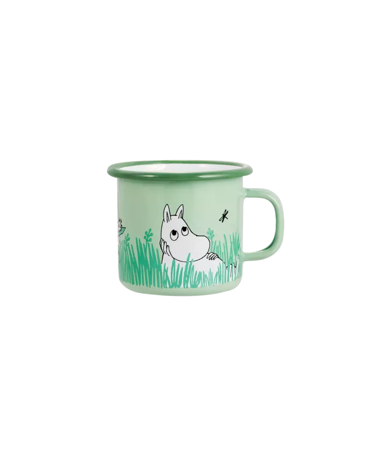 Emaljekoppen har en myk kantovergang for å skape en behagelig overflate å drikke fra. Emaljekoppen er godkjent for bruk på komfyr, induksjonsplate, ovnen og i oppvaskmaskin. Ikke godkjent for bruk i mikrobølgeovn.