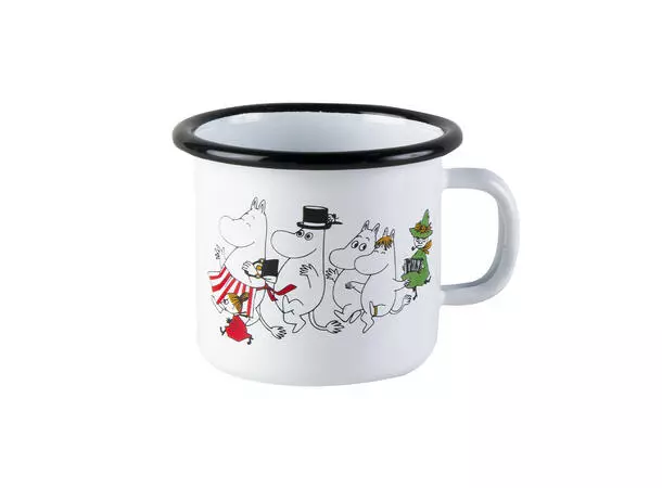 Emaljekoppen har en myk kantovergang for å skape en behagelig overflate å drikke fra. Emaljekoppen er godkjent for bruk på komfyr, induksjonsplate, ovnen og i oppvaskmaskin. Ikke godkjent for bruk i mikrobølgeovn.